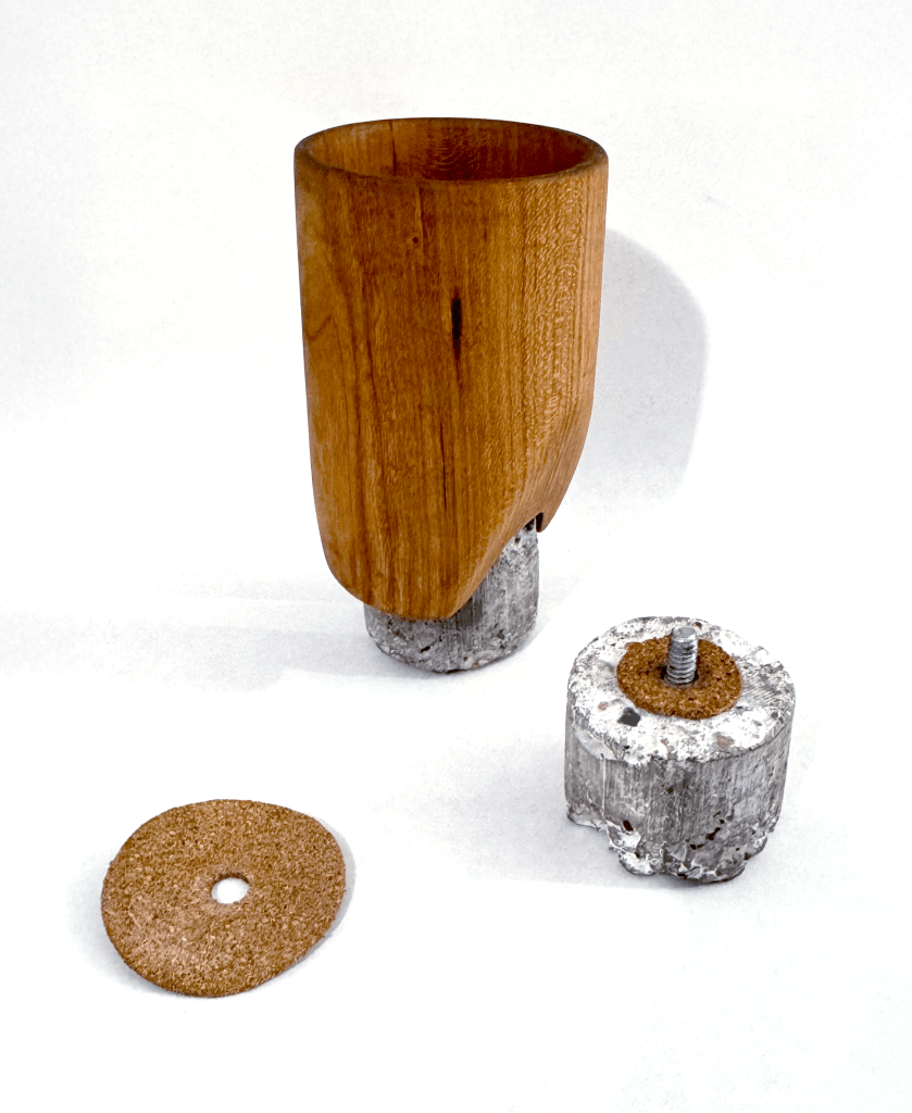 This project, for Borgo Santo Pietro, was helpful for me to dive into making a heritage object with ritual value. A revision would include a revised attachment strategy for the cork on the underside of the base, and exploring other shapes for the base. I would also further experiment with chip size in the concrete mixture. The balance of the cup was quite successful, both when placed and when held. The reveal of the slanted cut in the wood is a comfortable place to rest a finger or two.