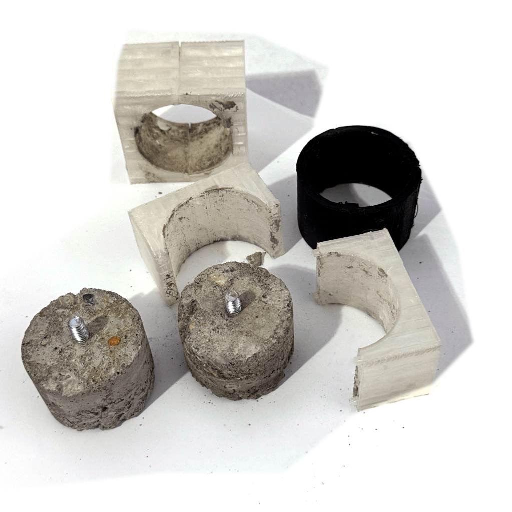 This version led to another physical prototype. This one was cast with a cylinder mold and a jig to support a suspended bolt within the concrete.